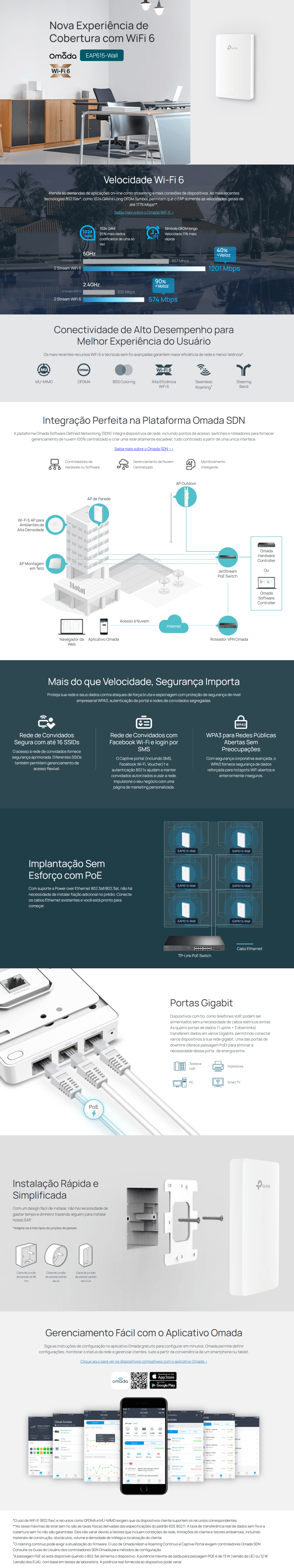 Gerenciamento Centralizado: Integra-se ao Omada SDN para acesso à nuvem e gerenciamento remoto.