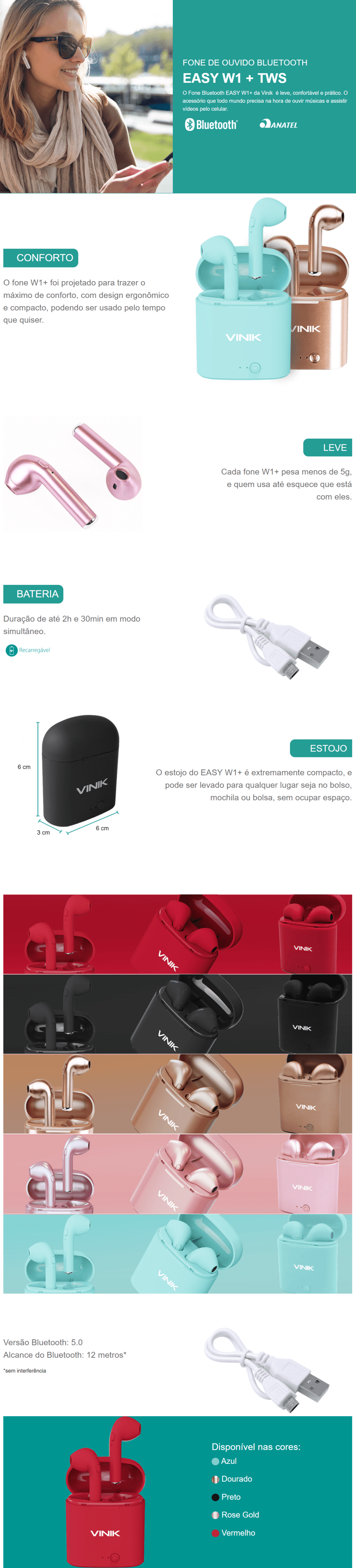 Os fones Easy W1 da Vinik vieram para te dar mais liberdade a cada batida da sua música preferida! Seja em casa, no trabalho ou praticando atividades ao ar livre, os fones Easy W1 não te deixam sair do ritmo!