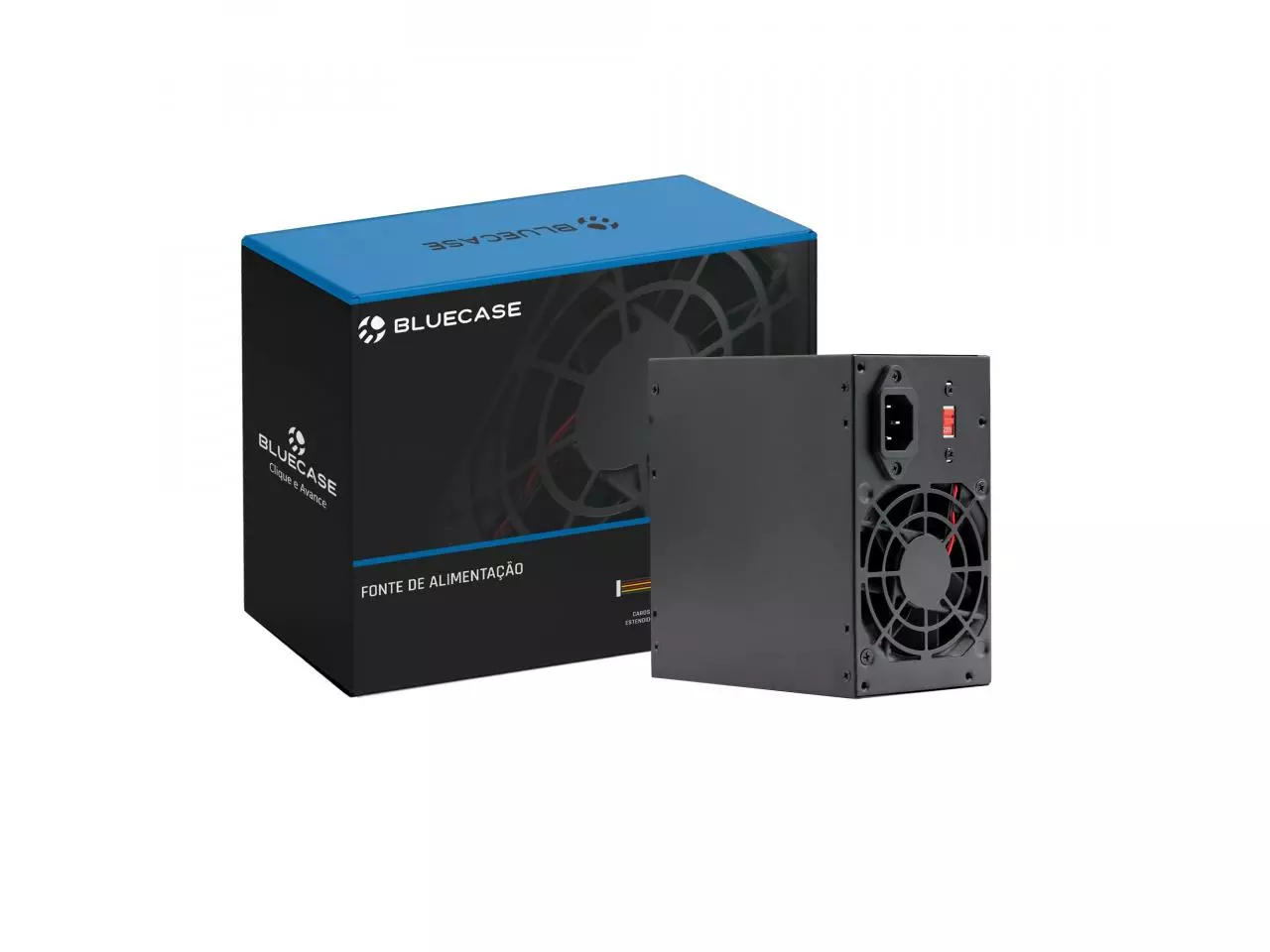 A Fonte de Alimentação Bluecase® BLU350-CMPS3 é uma solução de 350W para sistemas que não exigem PFC ativo. Com eficiência de 70%, possui chaveamento manual de voltagem e proteções elétricas essenciais, como OVP, OCP, OPP e SCP.