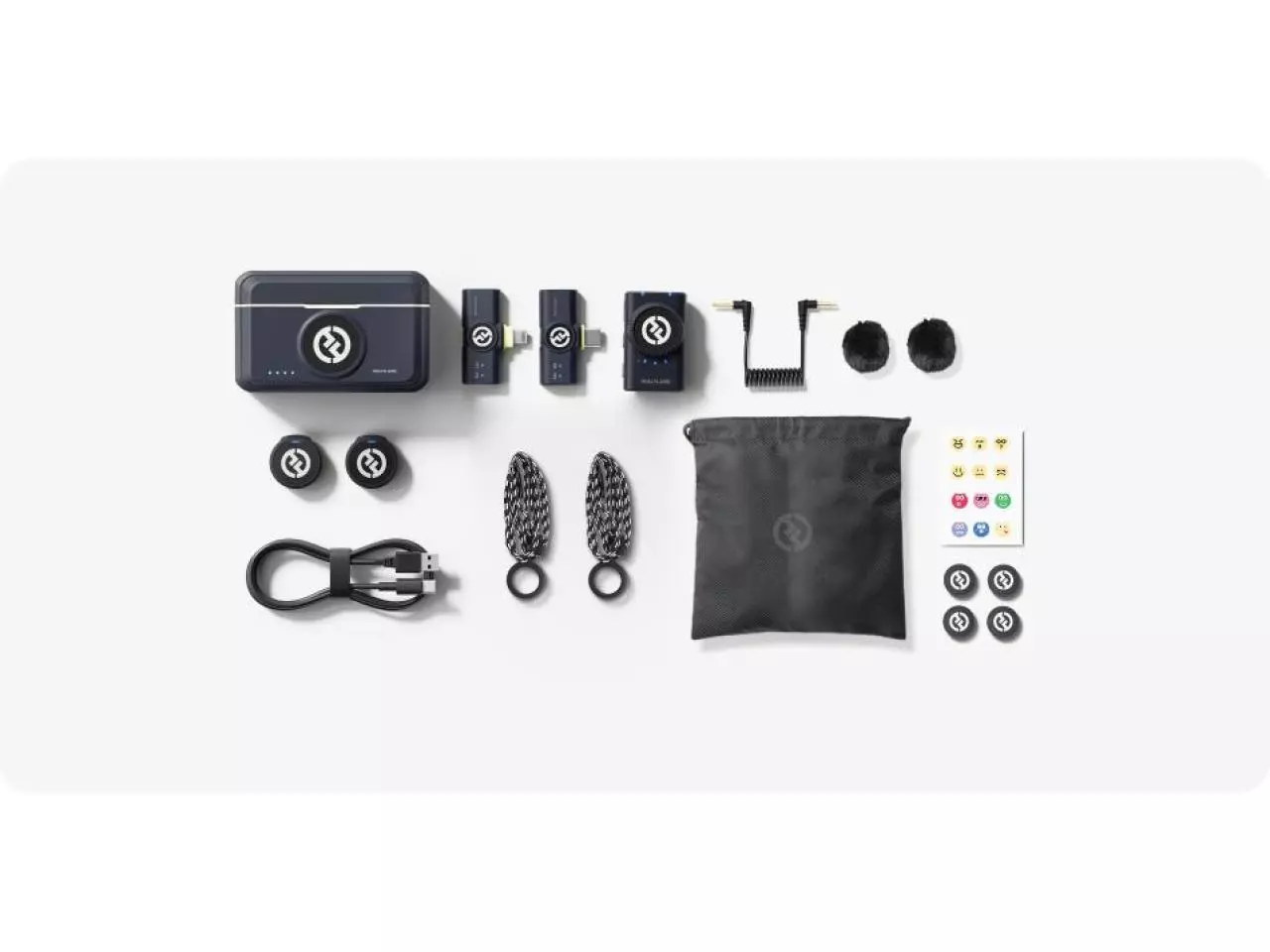 O Hollyland Lark M2 Combo oferece versatilidade total com três tipos de receptores (câmera, Lightning e USB-C), permitindo uso em smartphones, câmeras e outros dispositivos. Seu design compacto, leve e discreto proporciona praticidade no dia a dia, enquanto o estojo de carregamento facilita transporte e autonomia prolongada.