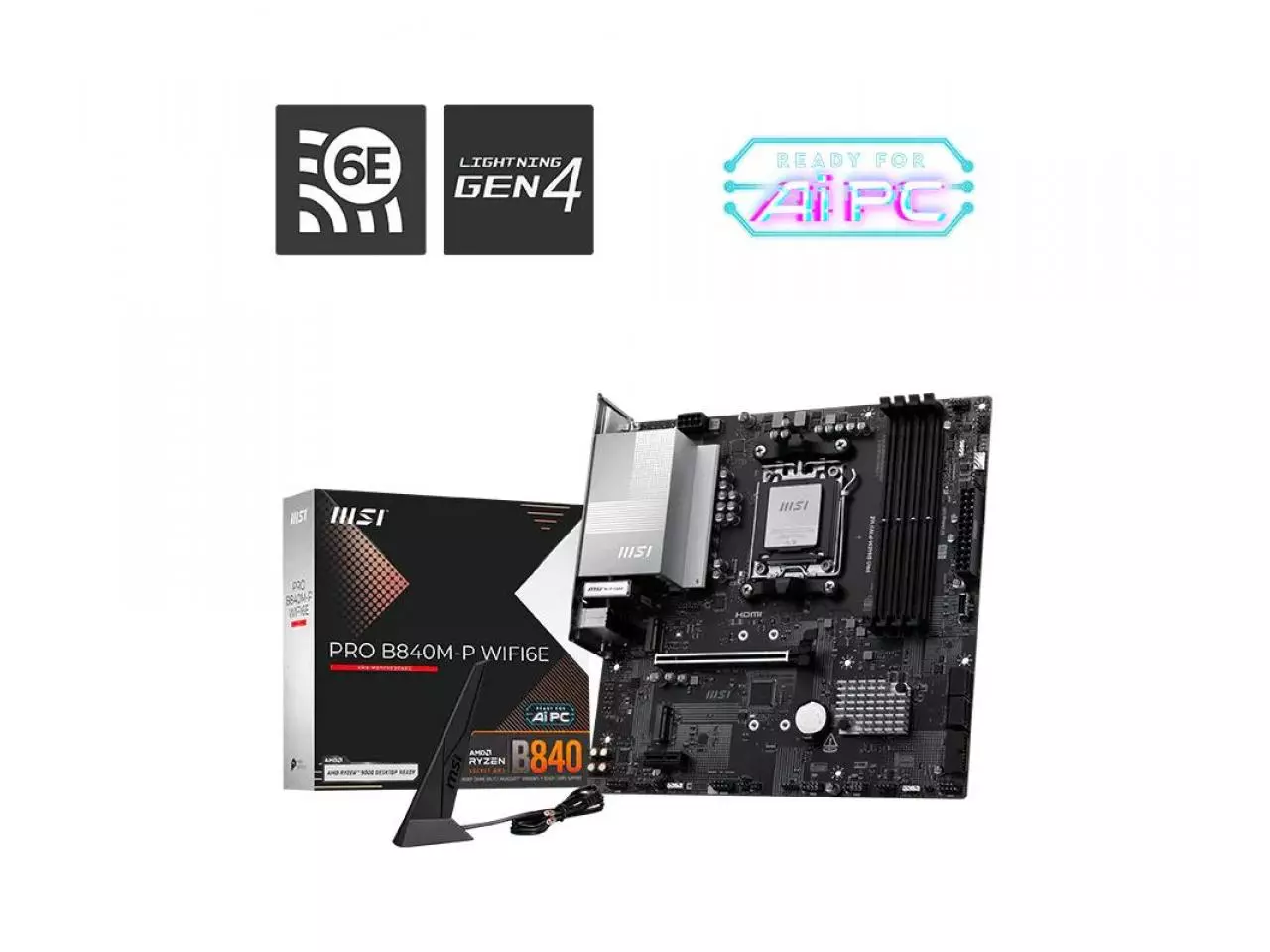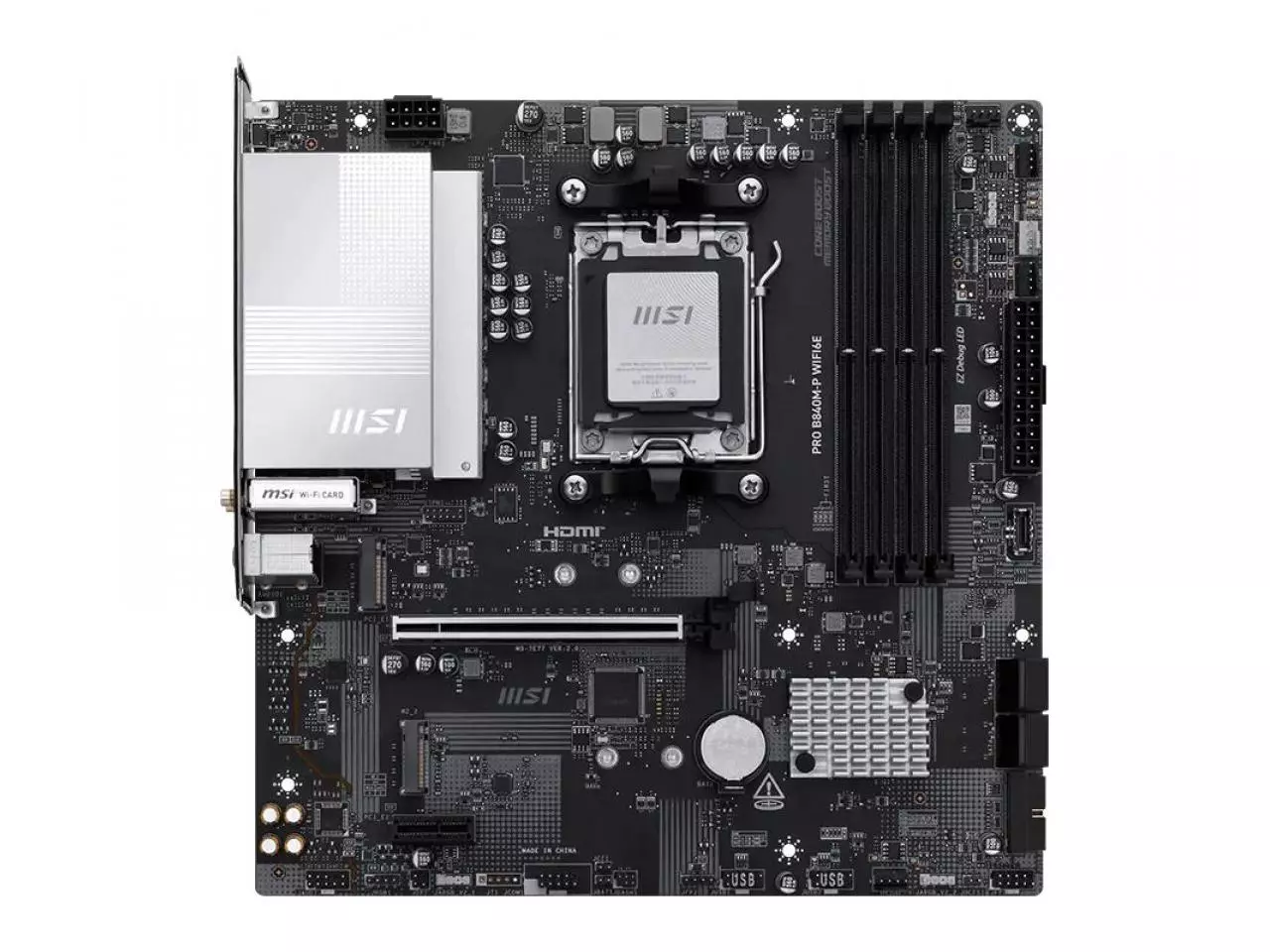 Placa-Mãe MSI PRO B840M-P WIFI6E, DDR5, AMD AM5, mATX, PCIe 4.0, Wi-Fi 6E, Bluetooth, M.2