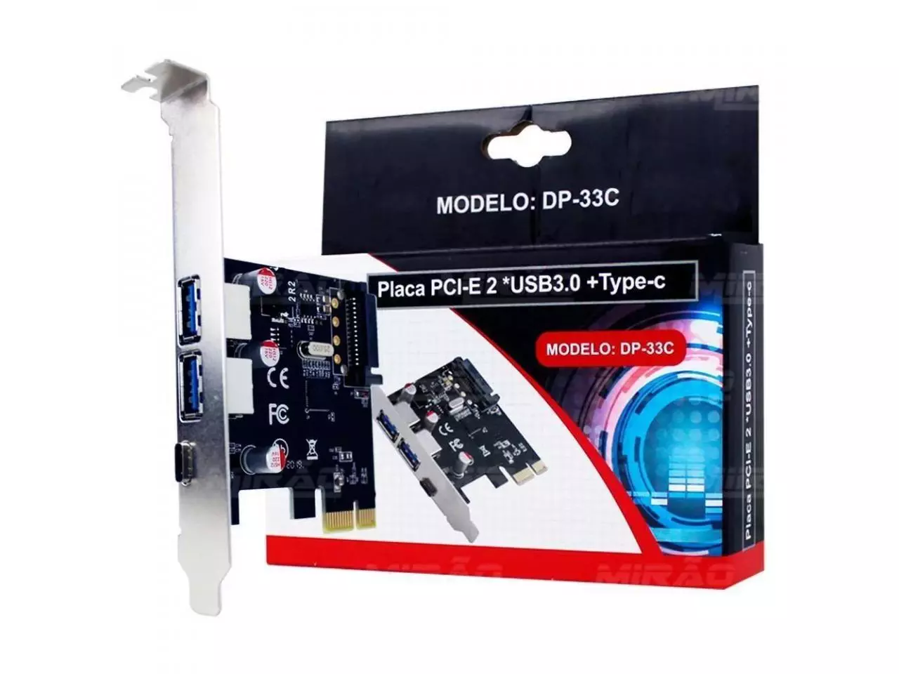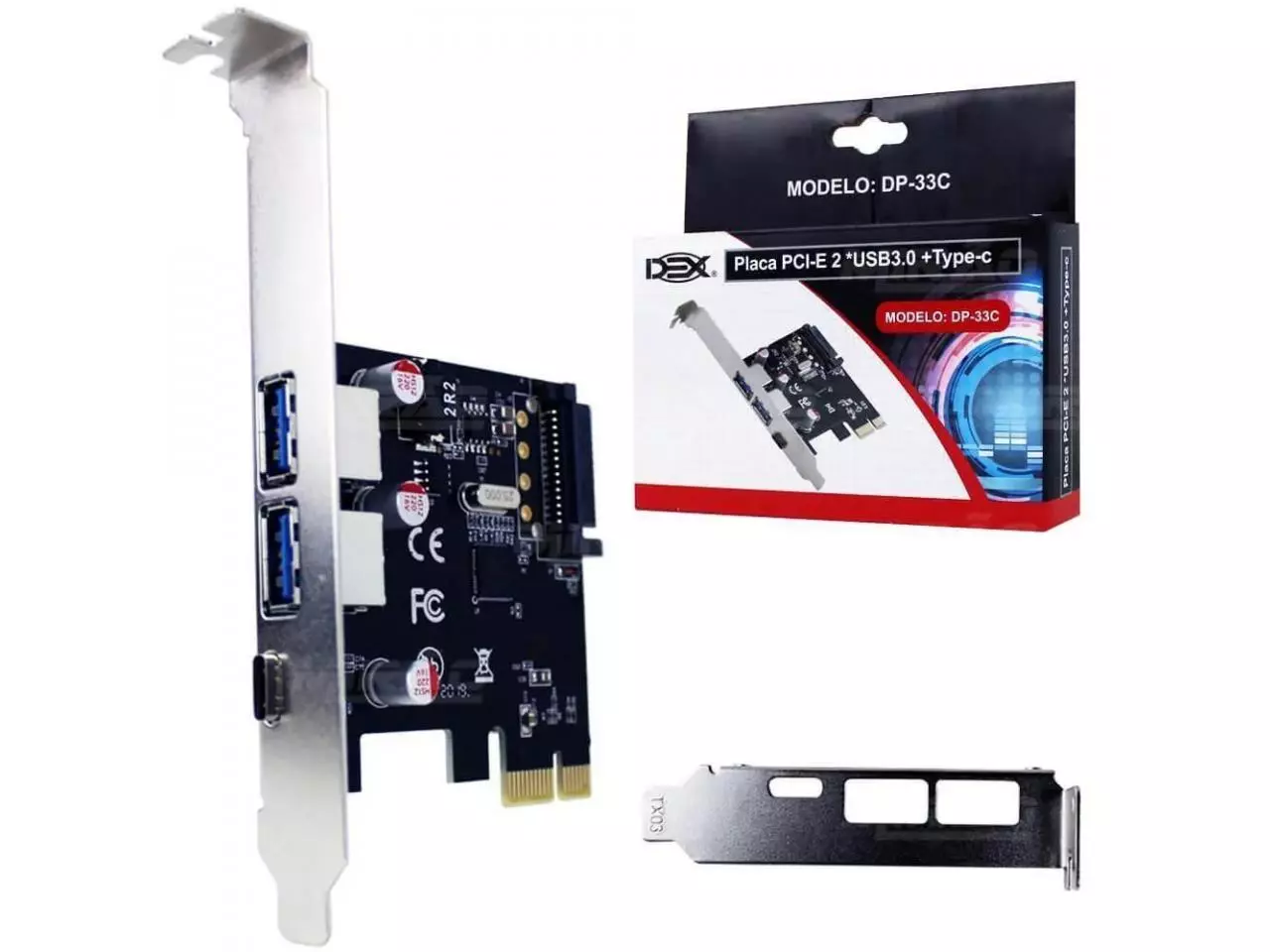 Expanda a conectividade do seu desktop com a Placa Dex! Adicione 2 portas USB 3.0 ultrarrápidas (até 5 Gbps) e 1 porta USB-C moderna através de um simples slot PCI Express.