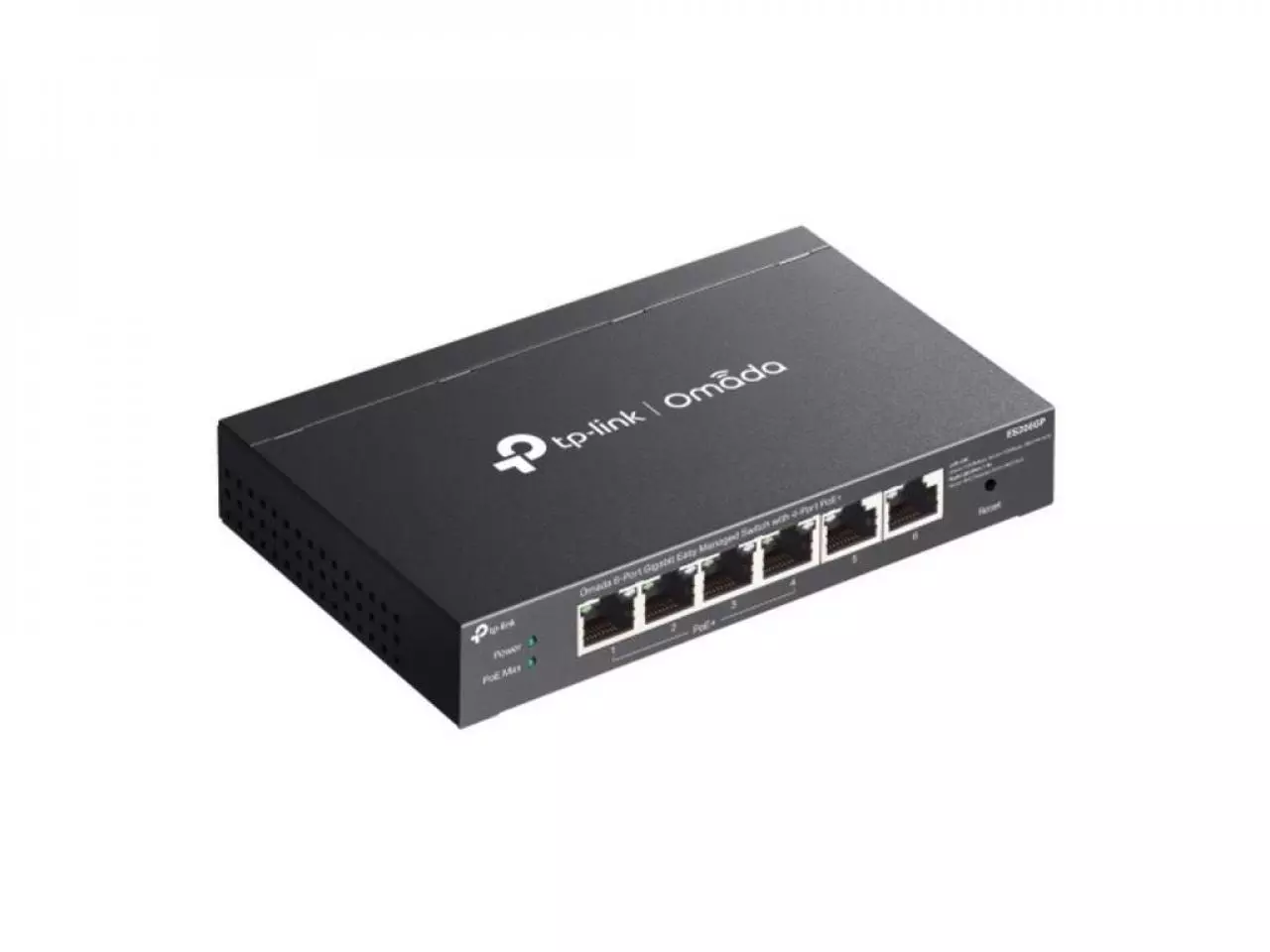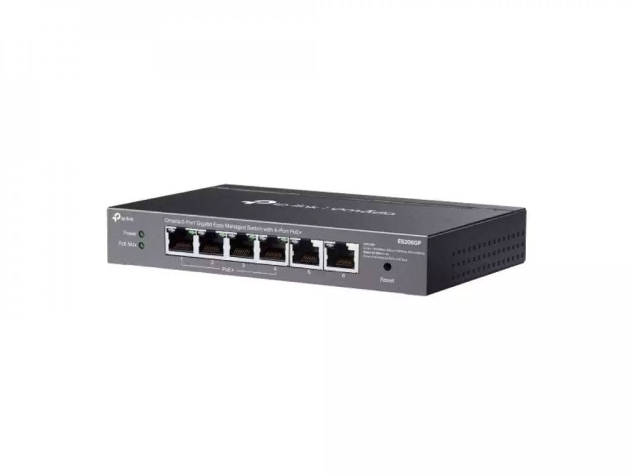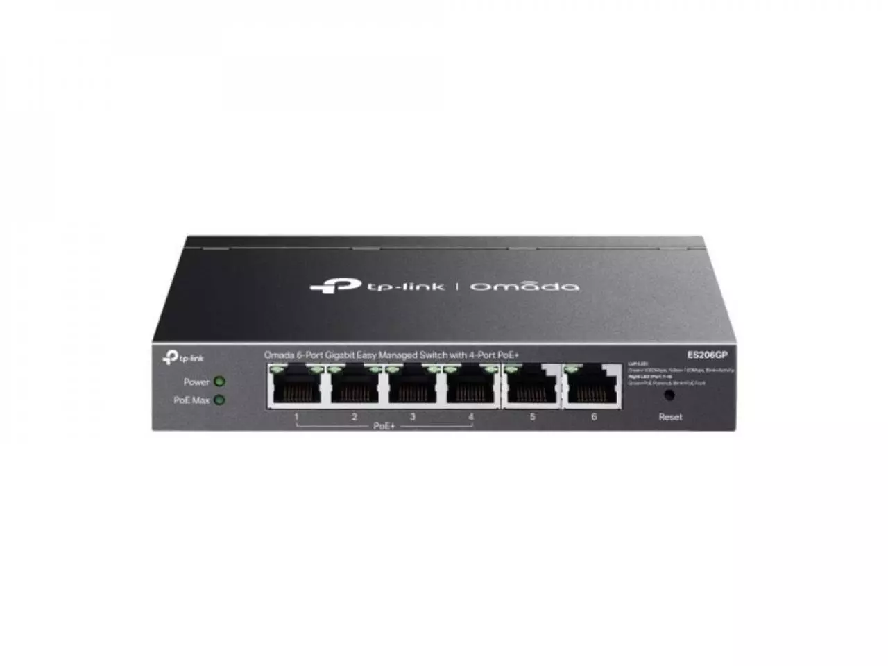 6 portas RJ45 10/100/1000Mbps (4 portas PoE+ compatíveis com os padrões 802.3af/at)