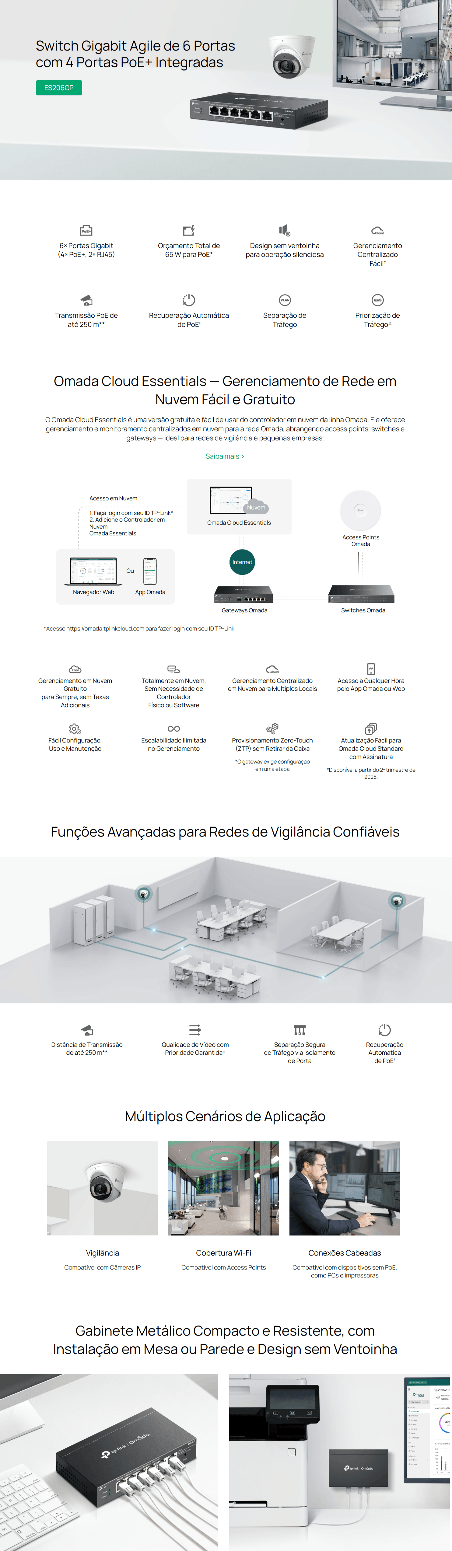 Monte sua rede profissional com gerenciamento centralizado sem custos mensais. O ES206GP combina desempenho, silêncio e recursos avançados em um gabinete metálico compacto.