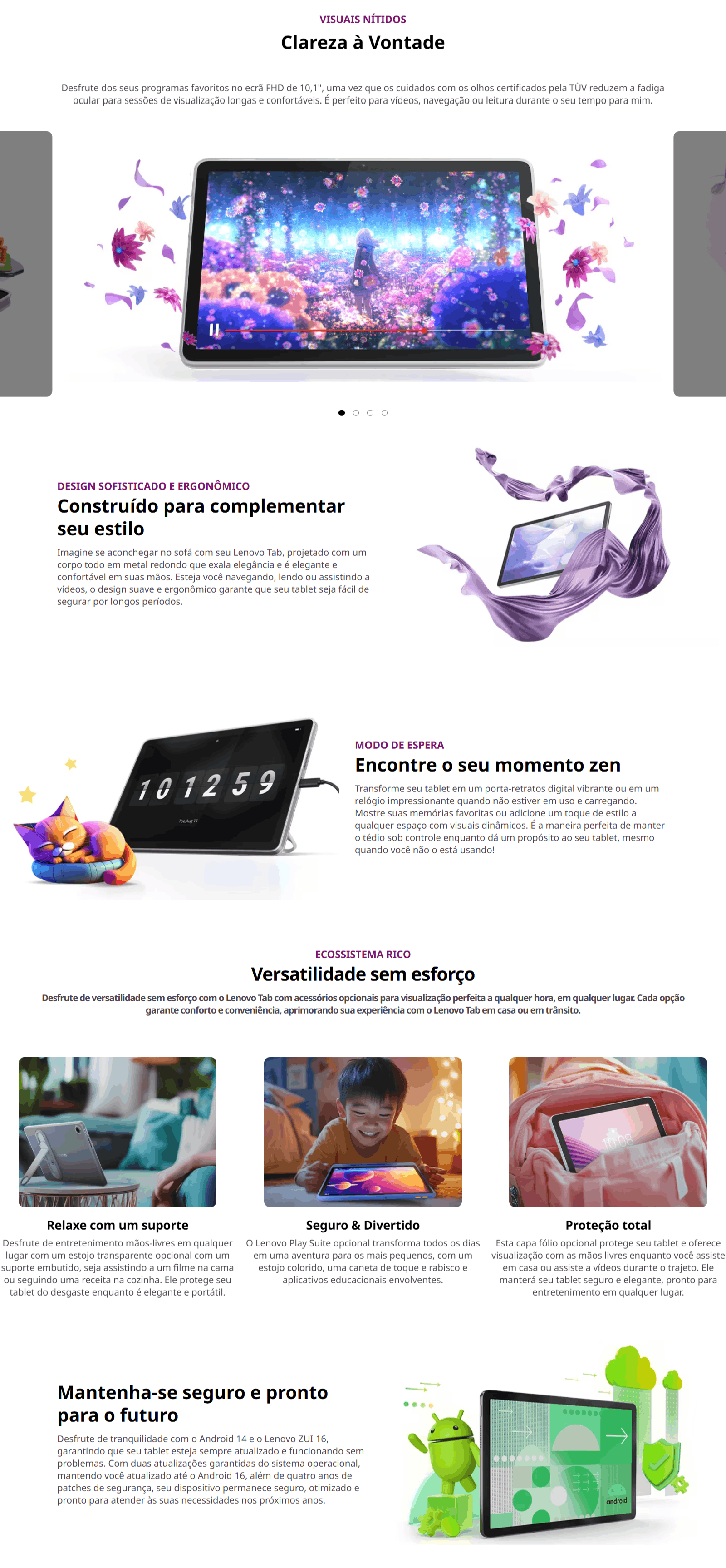 Desfrute horas de streaming ininterrupto com um tablet projetado para se adaptar a todos os estilos de vida. O design elegante e todo em metal parece ótimo e é confortável. Assista aos seus programas favoritos com uma nitidez impressionante com uma tela FHD de 10,1" e alto-falantes duplos ajustados com Dolby Atmos. A multitarefa suave é garantida com o processador MediaTek Helio G85 .