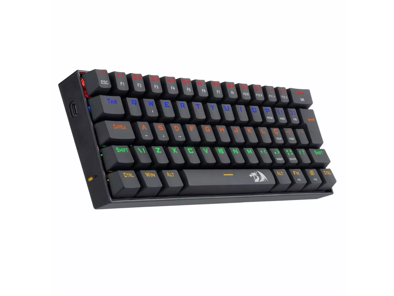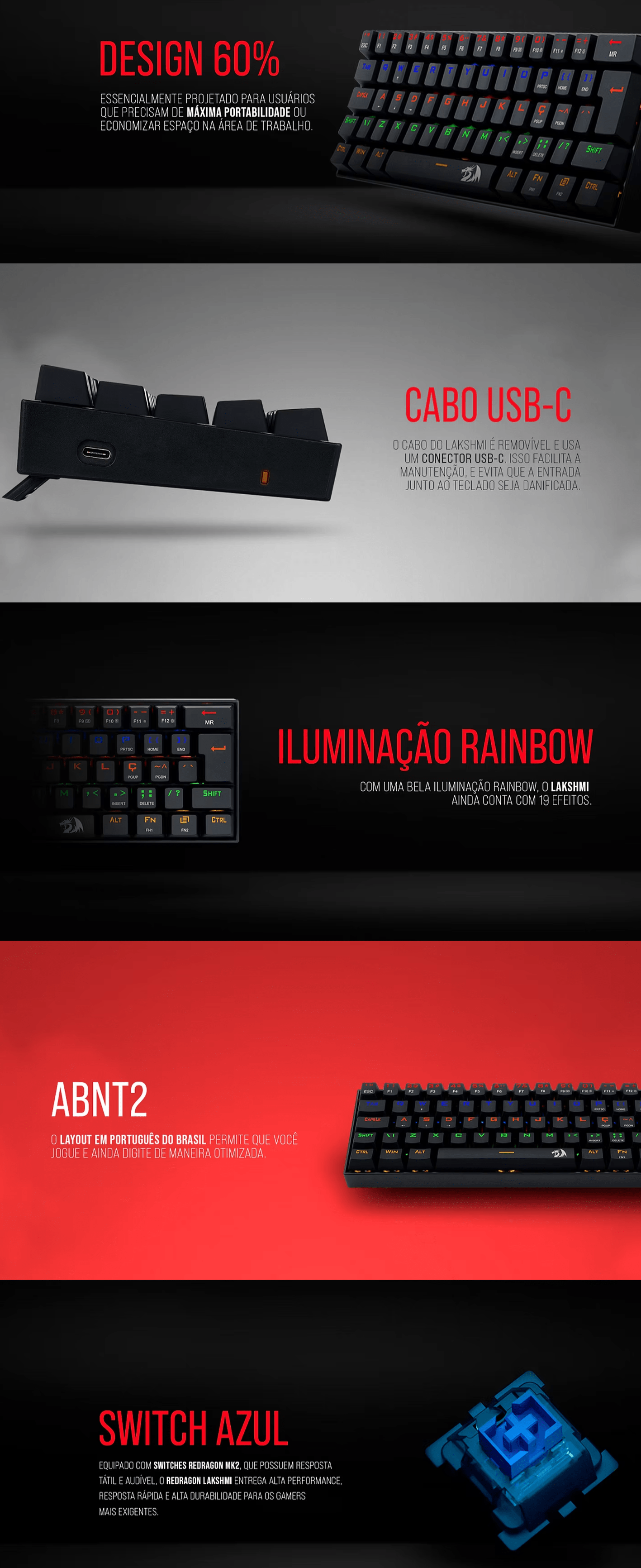 - Para os gamers que procuram deixar o máximo de espaço possível sobre a mesa, o Redragon Lakshmi vem no layout compacto 60% ABNT2.