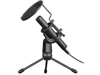 Microfone fácil de usar, incluindo tripé e filtro pop.