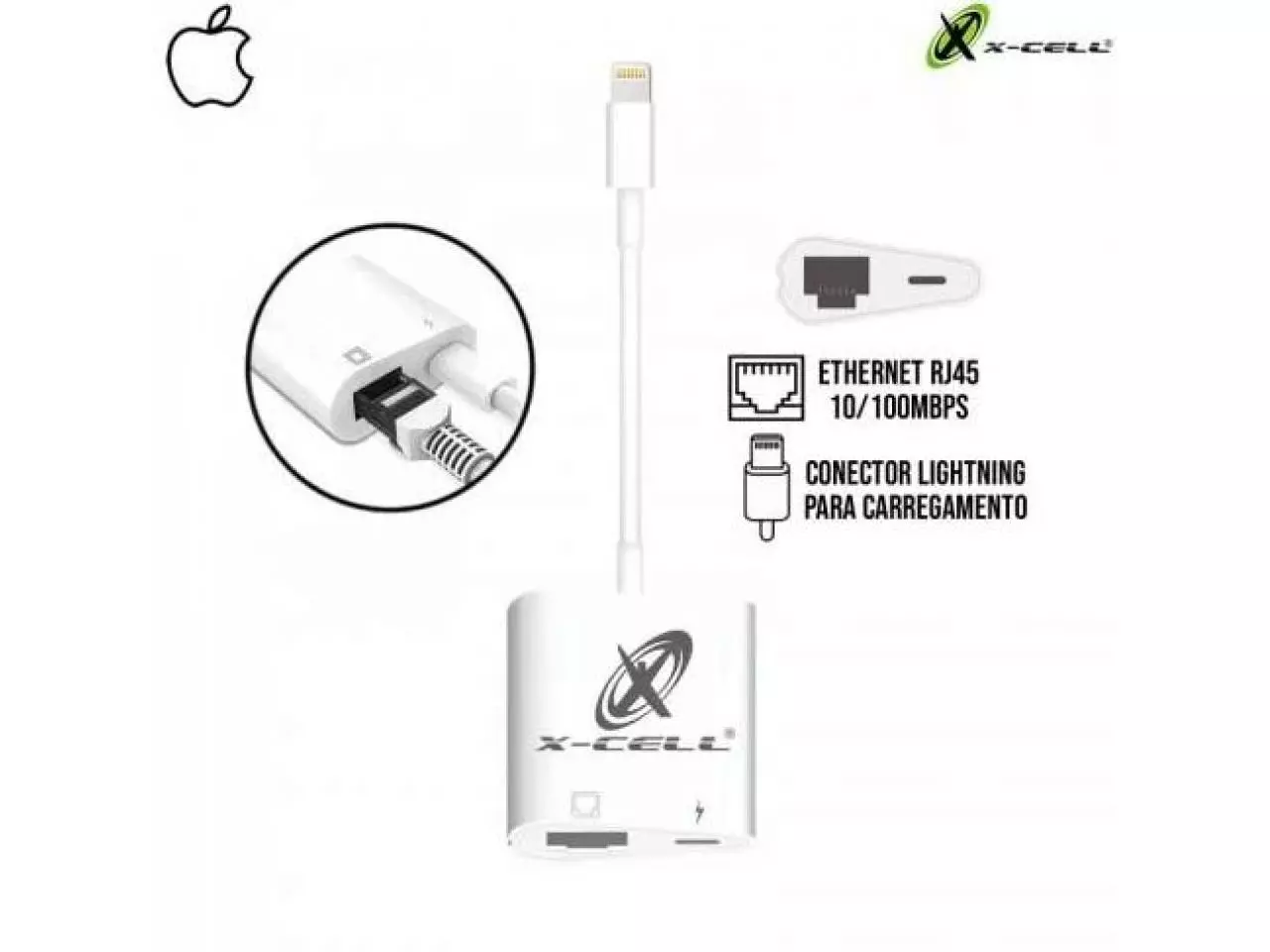 O adaptador XC-ADP-53 de cabo de rede com fio Ethernet Lightning / RJ45 LAN conecta o iPad/iPhone com a porta de carga, não é necessário um dispositivo USB externo.