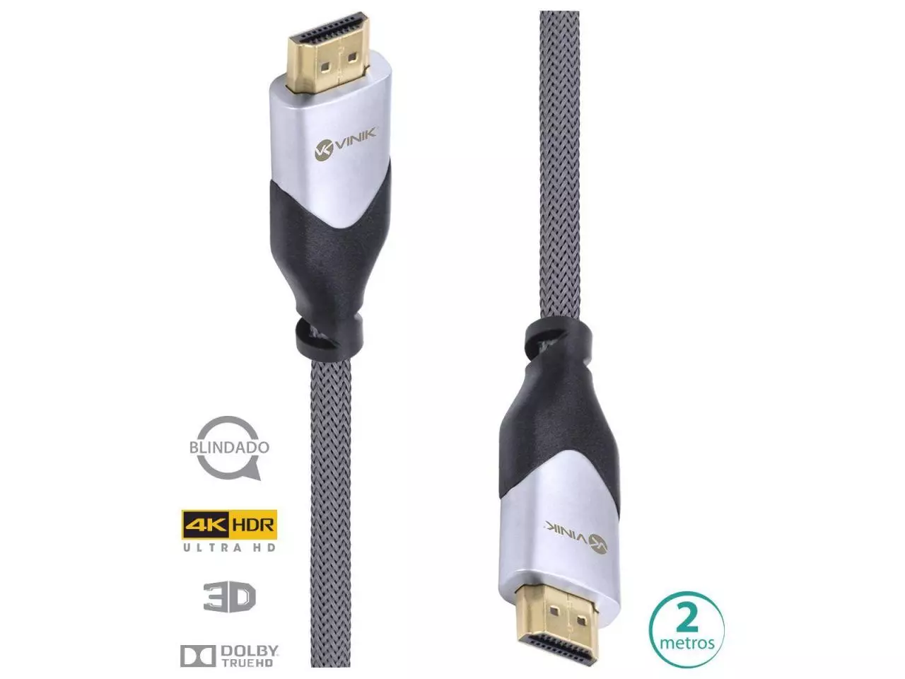 Cabo com blindagem interna, dispensa uso de filtros ou ferrite para evitar ruídos, possuindo uma malha de alumínio que cria o isolamento para o cabo. Áudio e vídeo com perfeição.