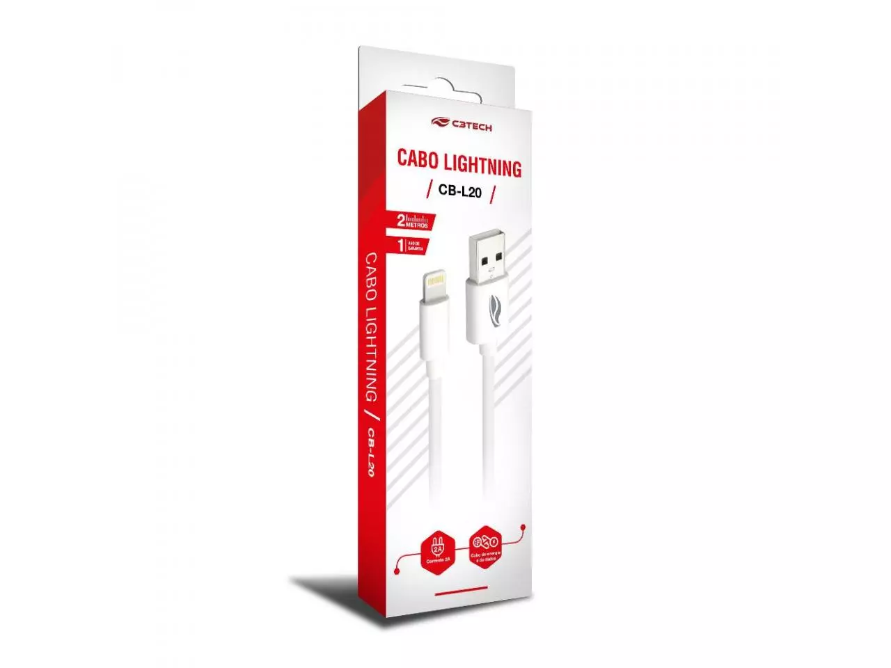 Cabo USB para recarga e sincronizacao de dados atraves da conexao USB-Lightning, compativel com IOS. Recarregue mais rapido seus dispositivos eletronicos em 2 amperes.