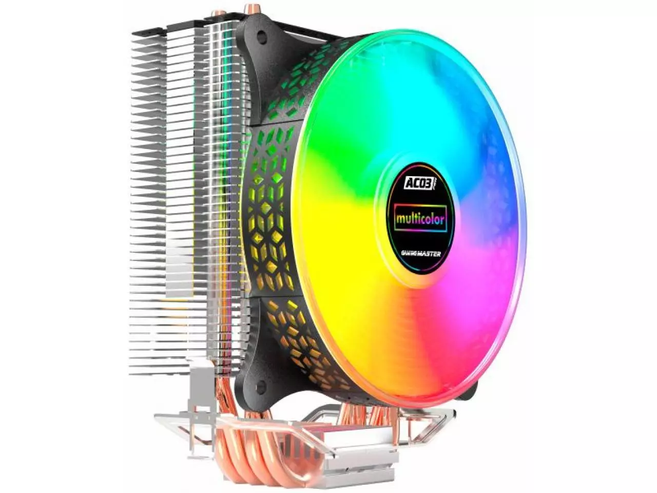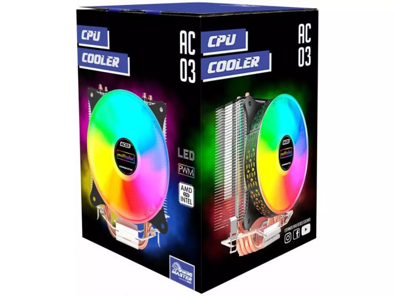 O CPU Cooler K-Mex AC03 Led Multicolor tem a estrutura do fan preta e cores dos LEDs: Multicolor. Possui 9 lâminas, fabricado em material resistente assim dissipa o calor do computador e mantém os limites seguros de temperatura dentro do sistema.