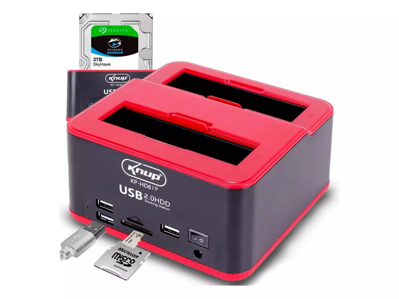 Com o Dock Station para 2 HDs você deixa seu computador mais leve e ainda faz grandes backups dos seus arquivos! Esta estação portátil permite conectar HDs ao computador através de uma interface USB 2.0, perfeito para realizar backups, garantindo que você não perca suas imagens e filmes! Com uma utilização simples, pois possui tecnologia “Plug and Play” essa estação portátil é muito simples de usar, basta colocar os HDs e realizar a conexão no computador, estará pronto para uso. Pensando em facilidade, para utiliza-lo será necessário somente a instalação do software, nosso manual explica passo a passo, é rápido pratico e garante total facilidade para o seu dia-a-dia, além de ter um design ultramoderno. Compatível com HDs SATA 2,5" ou 3,5", com até 2TB de memória. Duas portas para HD SATA, faça transferência de uma HD para o outro, ou até clone os arquinos. Possui também: 2 Entradas Usb 2.0, E 2 Slots para Cartão TF e SD.