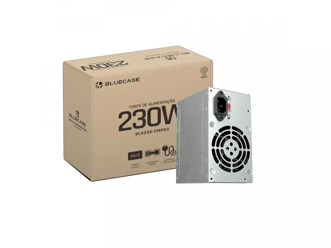 A Fonte de Alimentação Bluecase® BLU230-CMPS3 oferece 230W de potência para sistemas que não exigem PFC ativo. Com eficiência de 70%, conta com chaveamento manual de voltagem e proteções elétricas essenciais, como OVP, OCP, OPP e SCP.