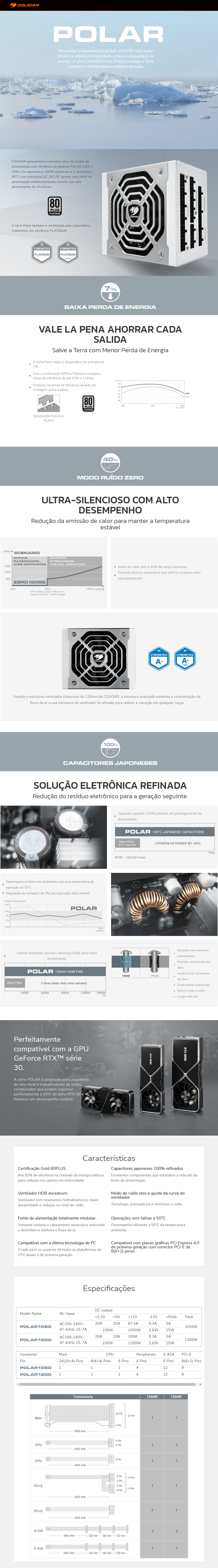 Para evitar o aquecimento global, uma PSU com maior eficiência significa longevidade e menos desperdício de energia. A série COUGAR Polar Platina protege a Terra e oferece o melhor para o próximo geração.