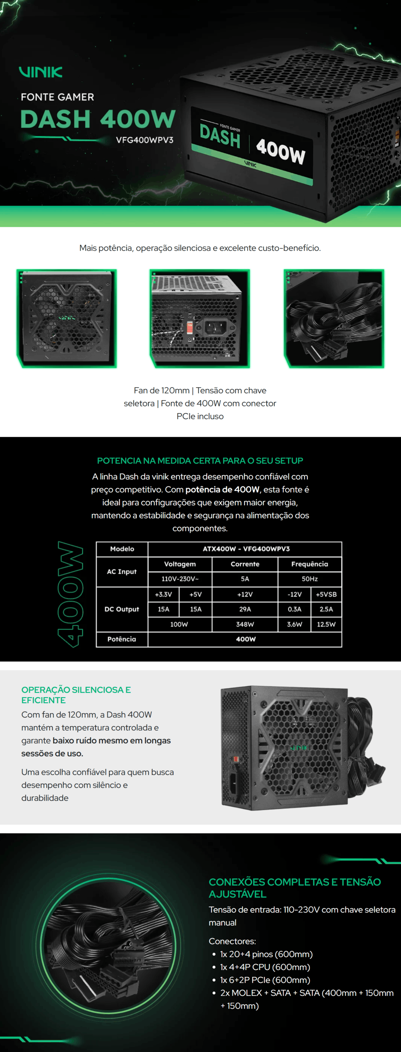 As fontes gamer Dash da Vinik chegaram trazendo desempenho e preço competitivo, garantindo o melhor custo x benefício do mercado.