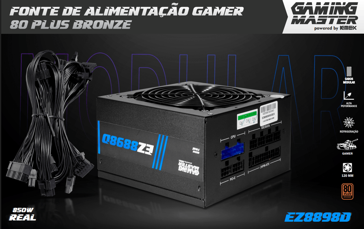 Energia inteligente com cabo modular completo, alta durabilidade e certificações globais para desempenho sem limites.