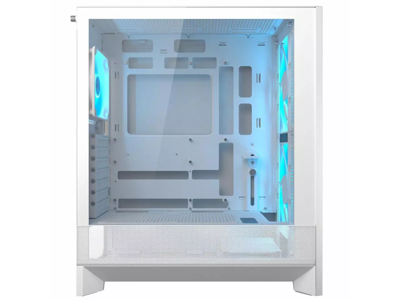 Com acabamento branco refinado e visual minimalista, o Airface 180 combina robustez e elegância. Seu painel frontal metálico perfurado garante o máximo fluxo de ar, enquanto o vidro temperado lateral exibe com clareza o interior do sistema e o brilho dos fans ARGB. Ideal para quem busca performance e estética em equilíbrio.