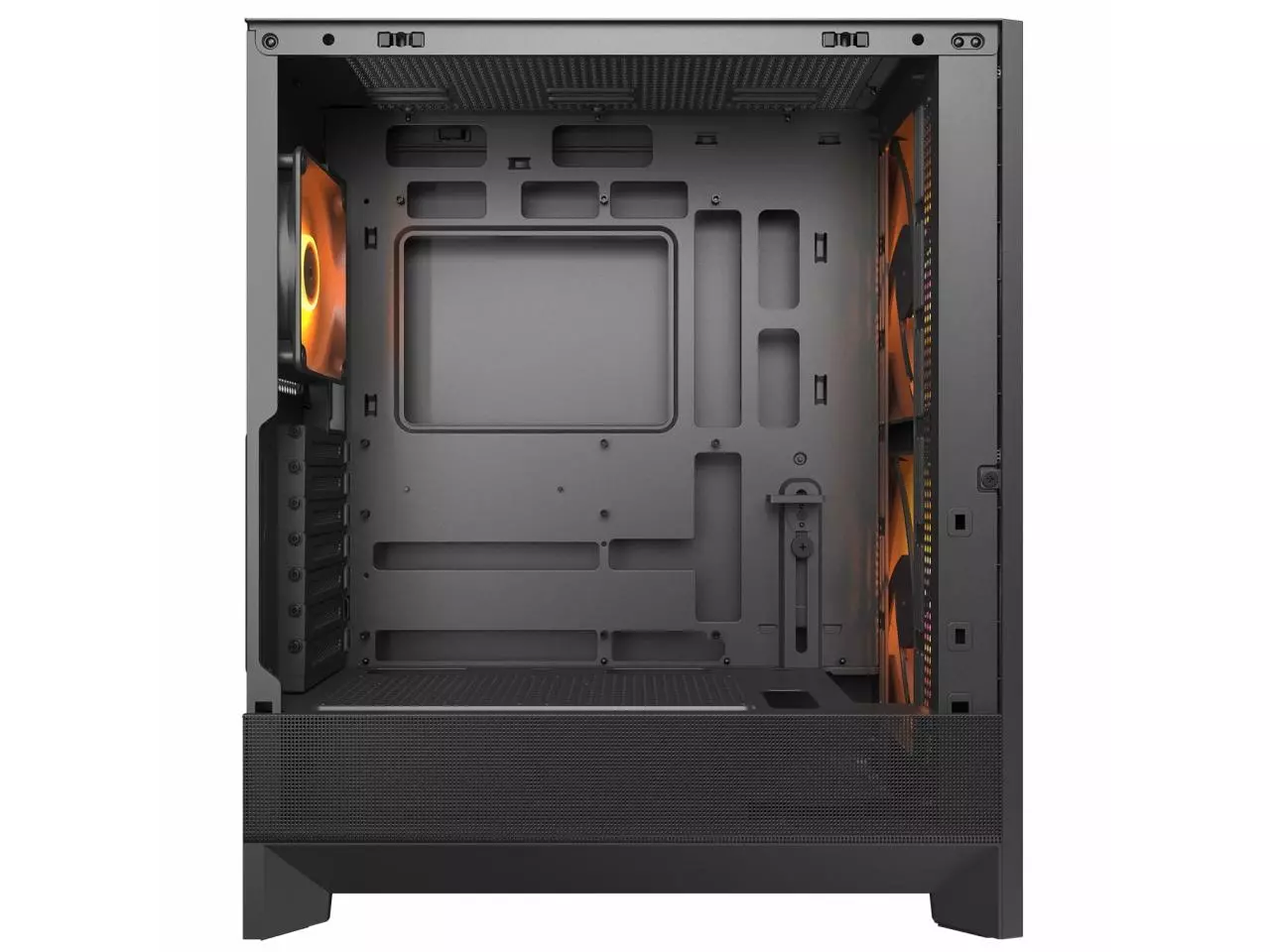 Com visual minimalista e estrutura de fluxo de ar otimizada, o Airface 180 apresenta acabamento metálico e painel lateral em vidro temperado para exibir os componentes internos. O painel frontal com duas ventoinhas ARGB PWM de 180 mm proporciona um visual marcante e performance térmica superior, mantendo o sistema frio mesmo sob carga extrema.