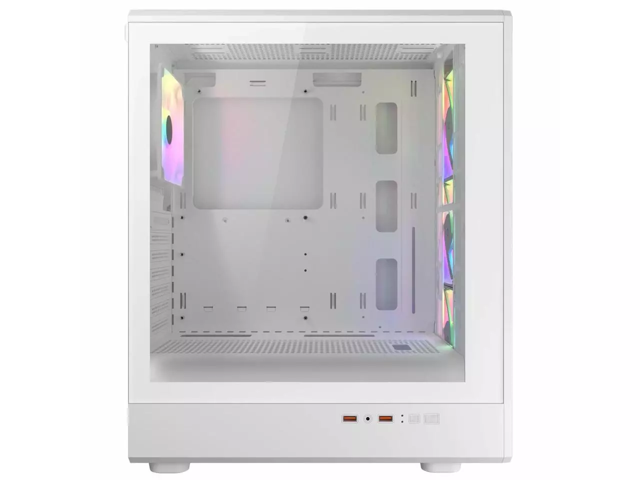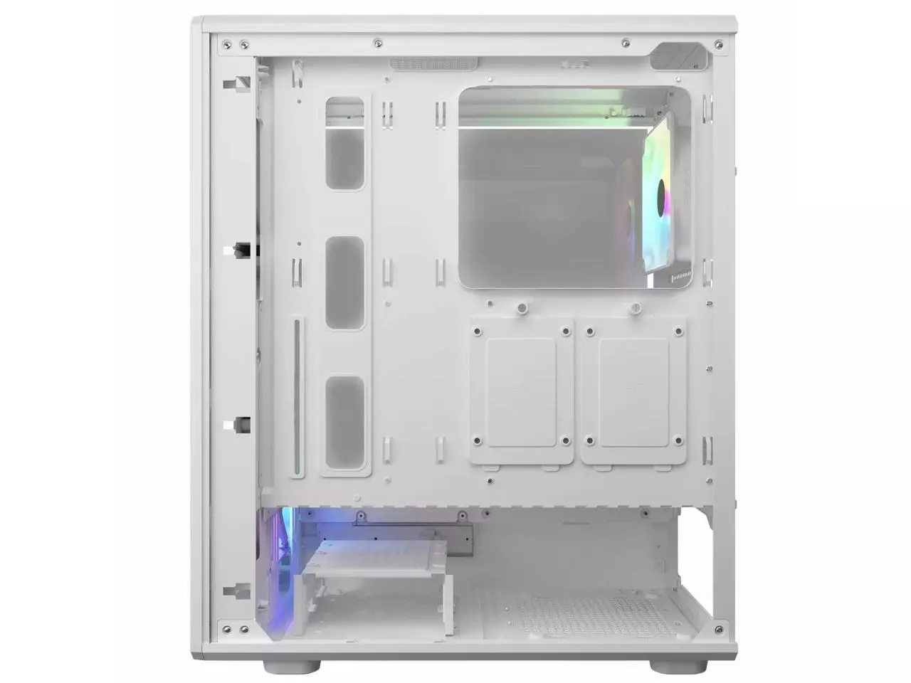O Airface Pure RGB Branco combina um visual minimalista com alto desempenho térmico. O painel frontal em mesh metálico ultrafino garante máxima entrada de ar, enquanto o painel lateral em vidro temperado oferece uma visão ampla dos componentes internos e da iluminação RGB. O acabamento em branco proporciona um visual limpo e moderno para qualquer setup gamer.