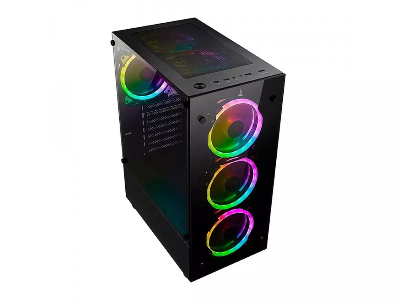 Recursos Avançados: Painel frontal com USB 2.0 e 3.0, além de áudio HD, com controle remoto para personalização das luzes RGB.