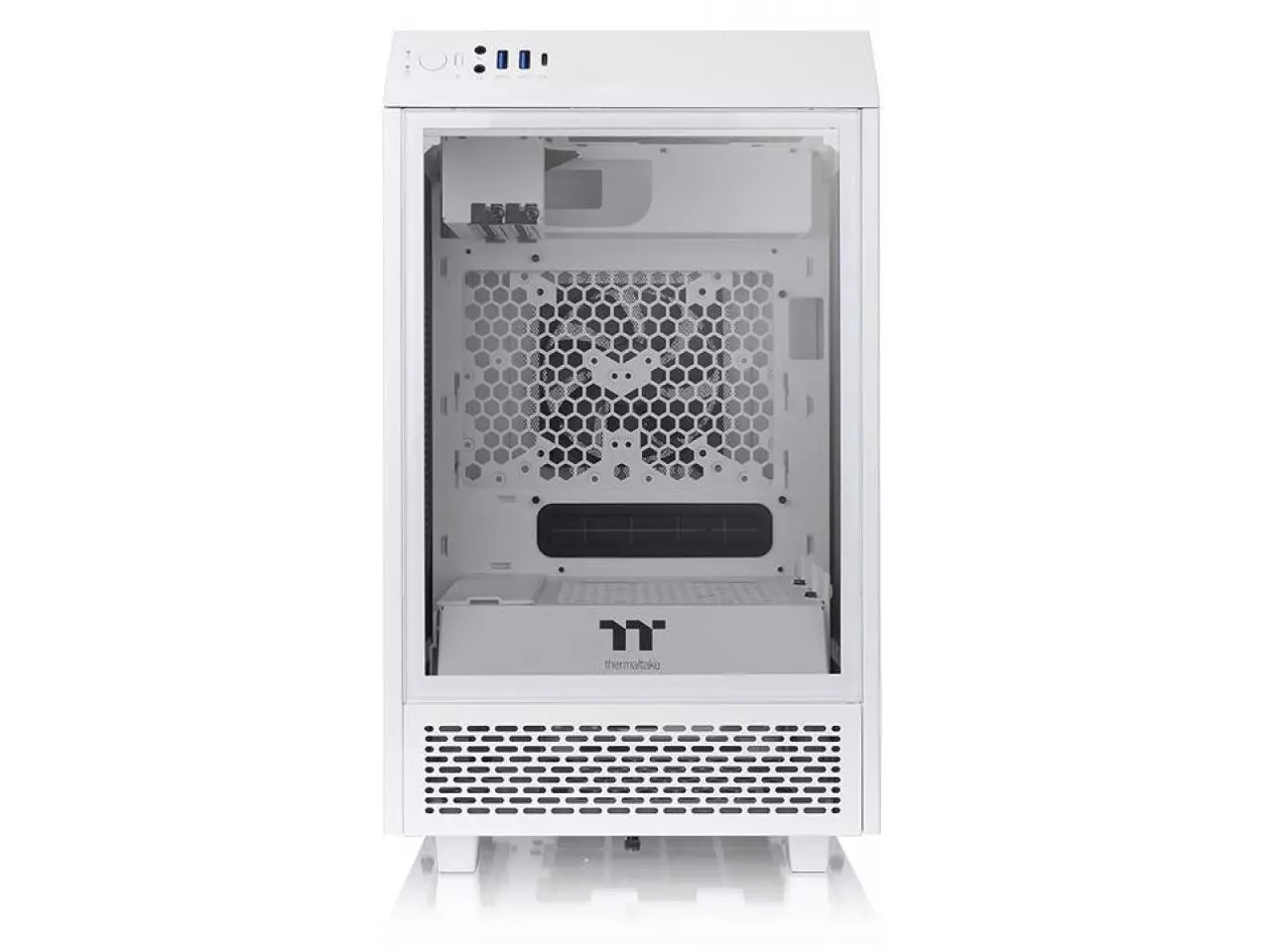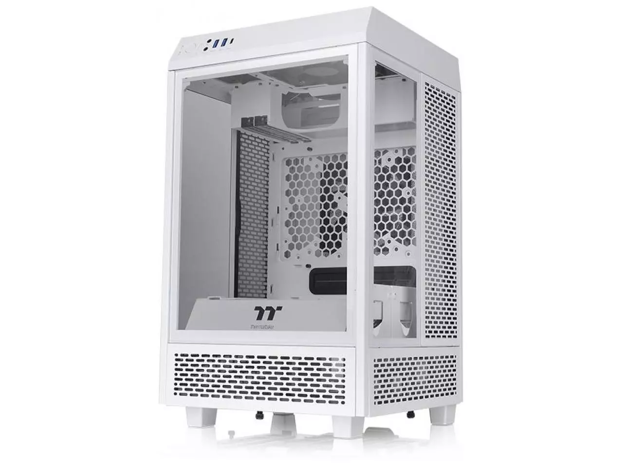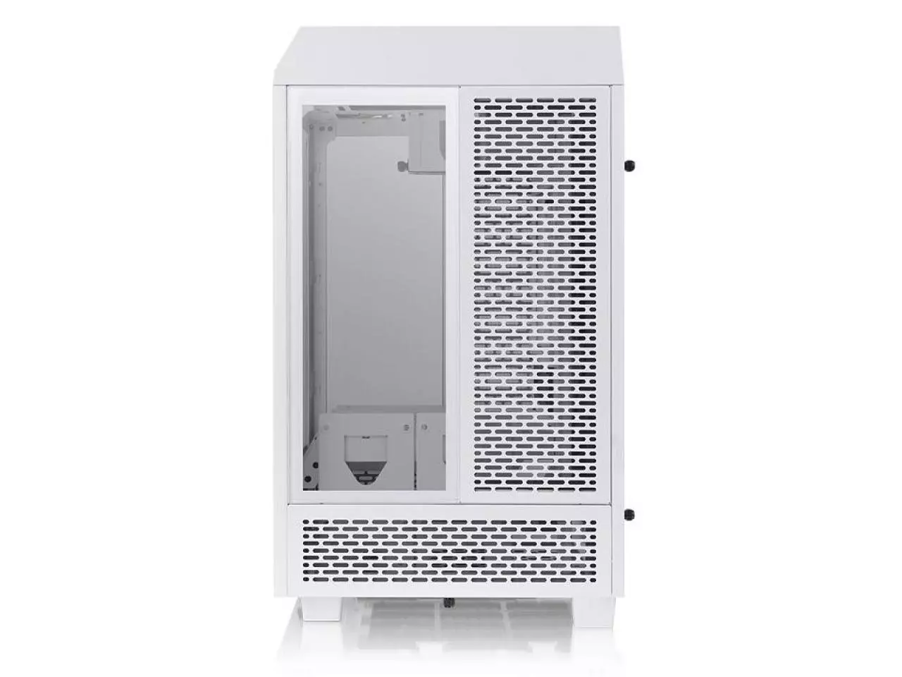 O Tower 100 é um chassi mini-ITX projetado verticalmente com visualização panorâmica. Ele vem com duas ventoinhas padrão de 120 mm pré-instaladas e três janelas de vidro temperado de 4 mm na frente, no lado esquerdo e direito.