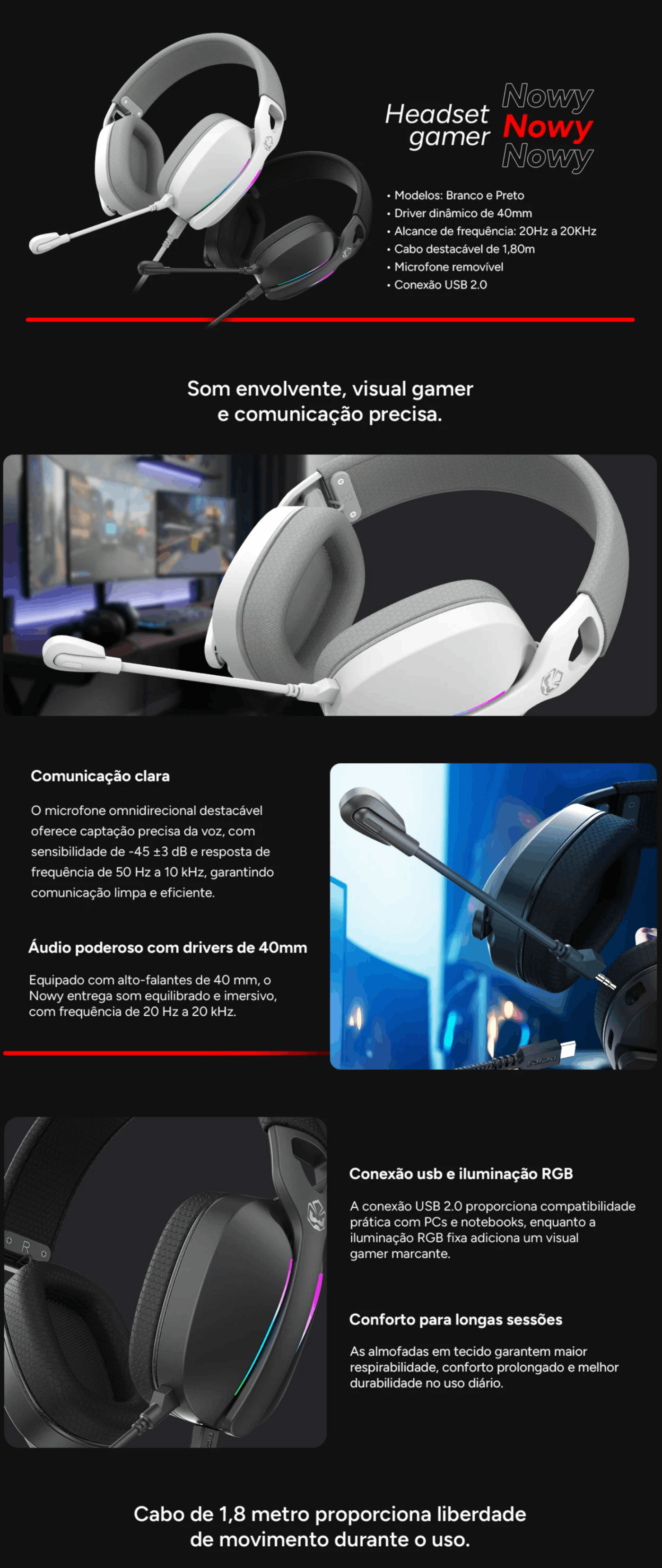 Som envolvente, visual gamer e comunicação precisa.
