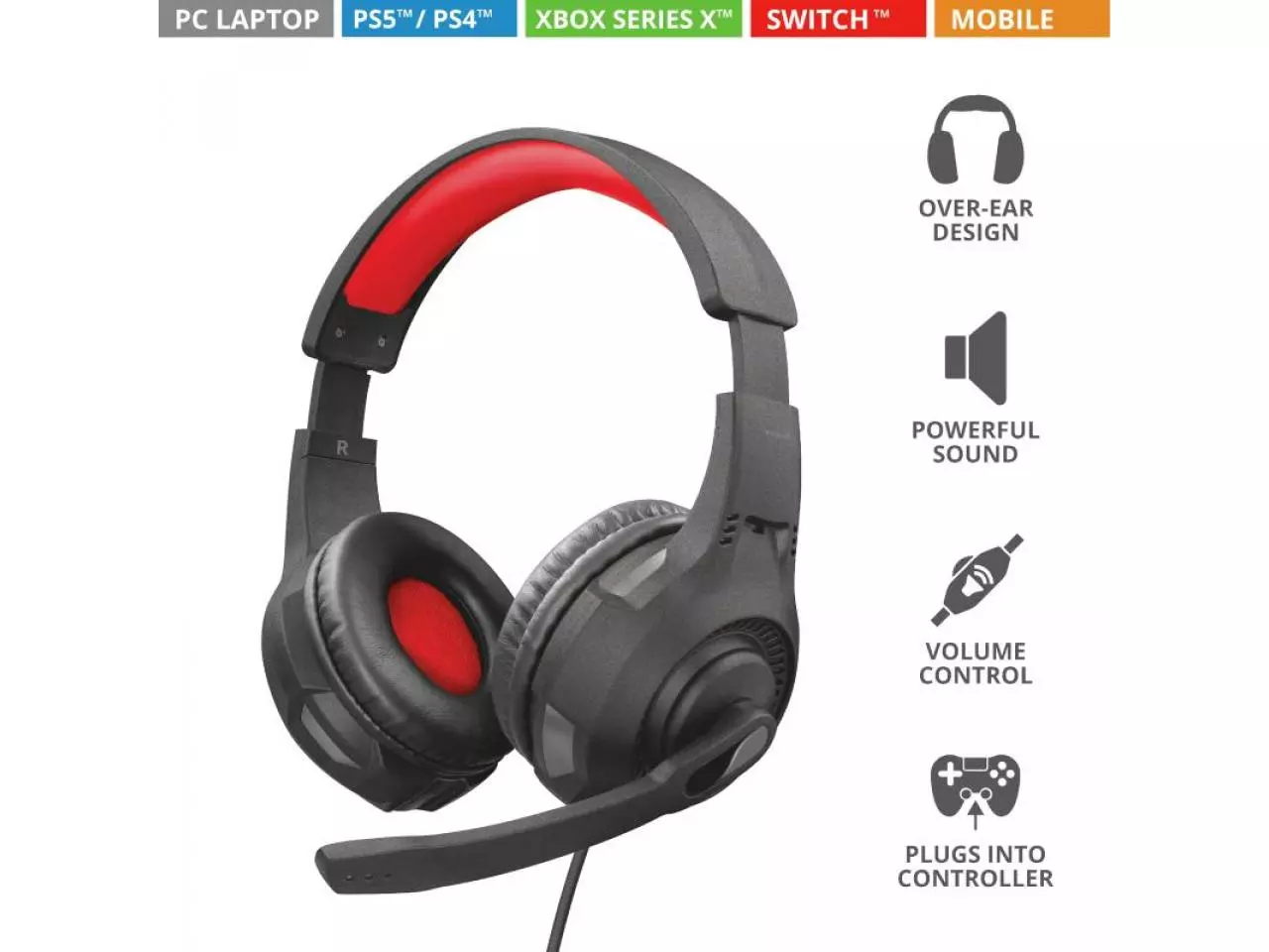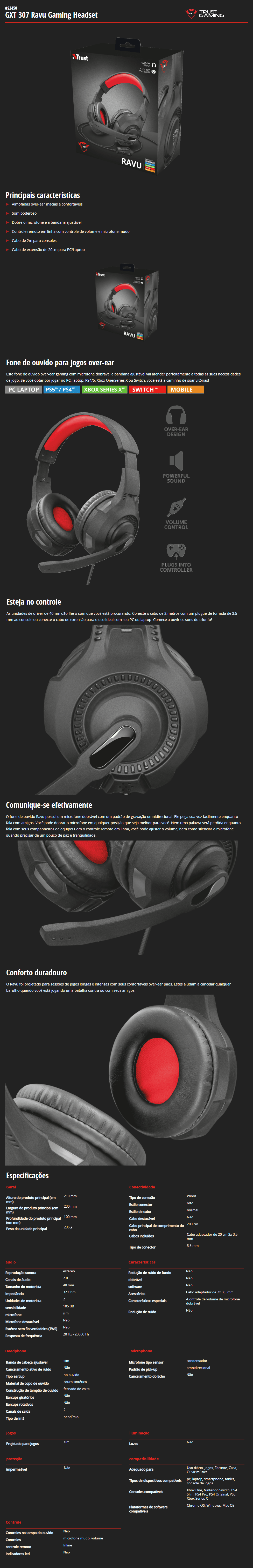 Fone de ouvido gamer over-ear com microfone dobrável e bandana ajustável.