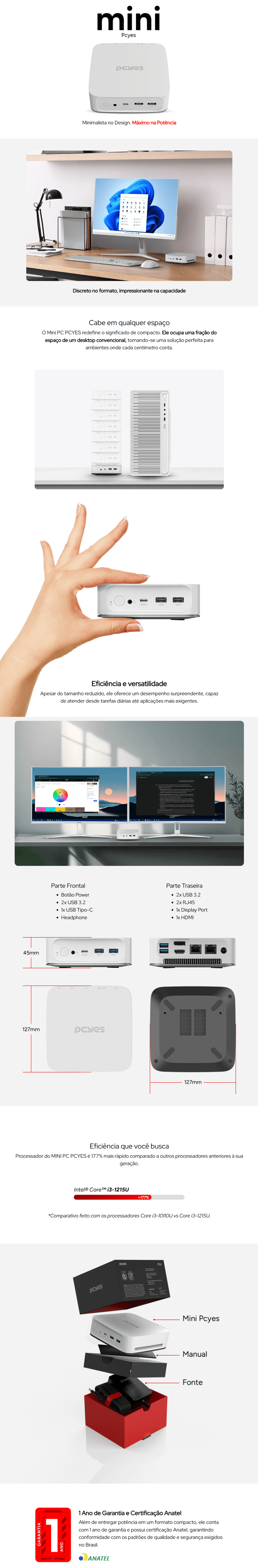 O Computador B300 FCBGA1744 i3-1215U 3.30 GHz com 8GB DDR4 e SSD 256GB NVMe com Linux Ubuntu é um desktop compacto e eficiente, ideal para quem busca desempenho equilibrado, fluidez no uso diário e ambiente pronto para produtividade. Equipado com o processador Intel Core i3-1215U, este computador oferece respostas rápidas em aplicações, boa performance em multitarefa e consumo de energia otimizado, perfeito para trabalho, estudo, home office e uso geral.