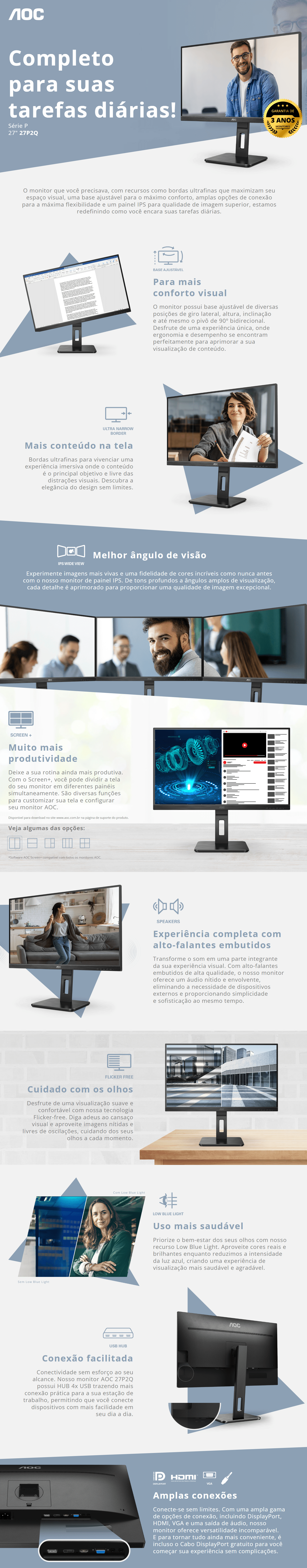 O monitor que você precisava, com recursos como bordas ultrafinas que maximizam seu espaço visual, uma base ajustável para o máximo conforto, amplas opções de conexão para a máxima flexibilidade e um painel IPS para qualidade de imagem superior, estamos redefinindo como você encara suas tarefas diárias.