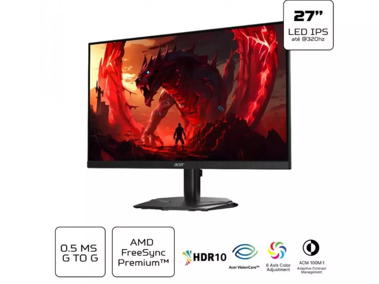 O Acer Nitro KG271U F3bmiipx traz a combinação perfeita de resolução Quad HD e frequência de atualização de até 320Hz, oferecendo imagens fluidas e detalhadas para gamers exigentes. Seu design Zero Frame proporciona maior imersão, enquanto tecnologias como FreeSync Premium e HDR10 garantem qualidade visual superior.