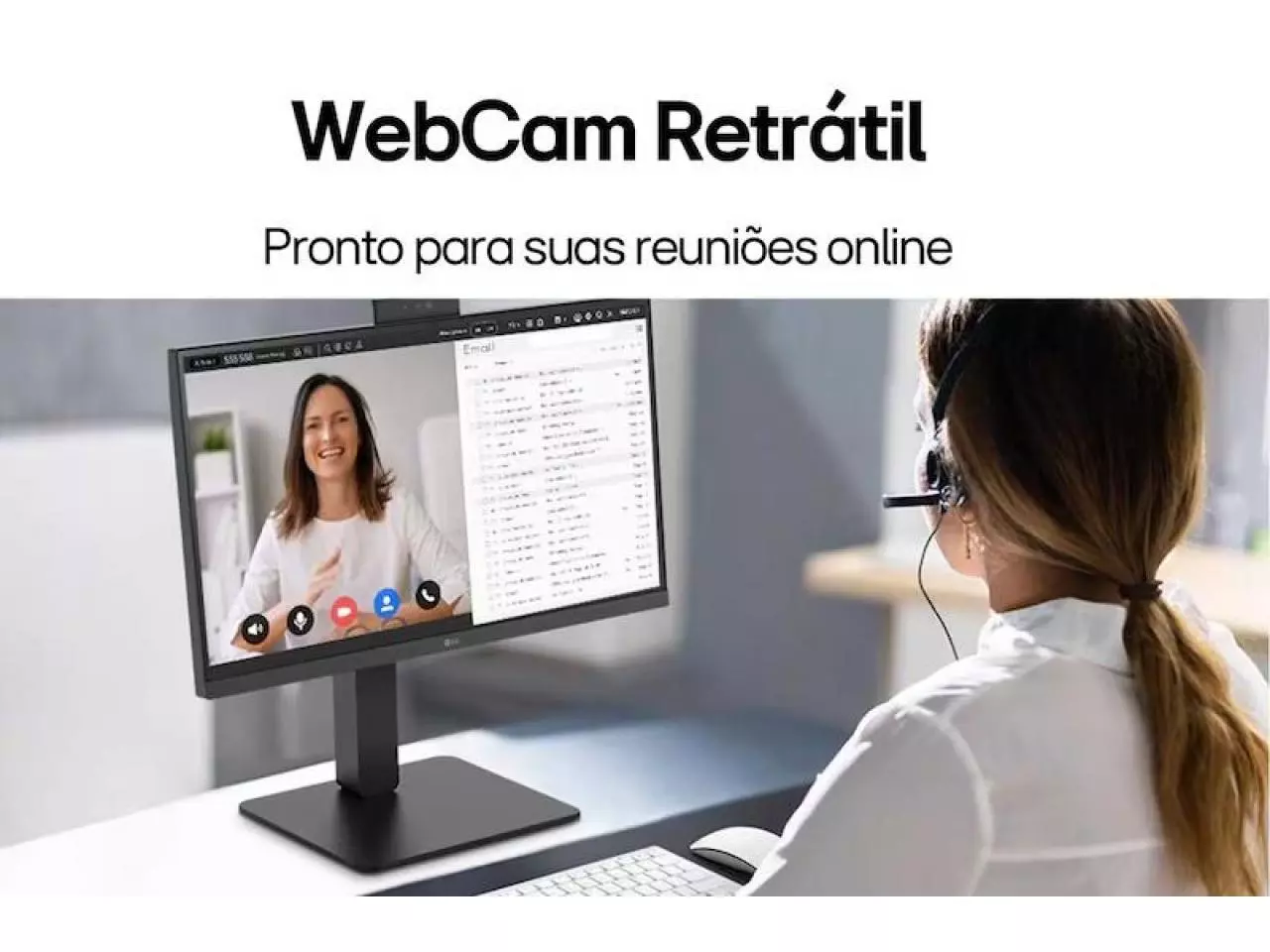 Além da tela de alta qualidade, o monitor conta com webcam Full HD retrátil, microfone, alto-falantes integrados, compatibilidade com Windows Hello, conexão USB-C com Power Delivery de até 90W, porta RJ45 e múltiplas entradas, tornando-se uma solução completa para reuniões online, produtividade e organização da estação de trabalho.
