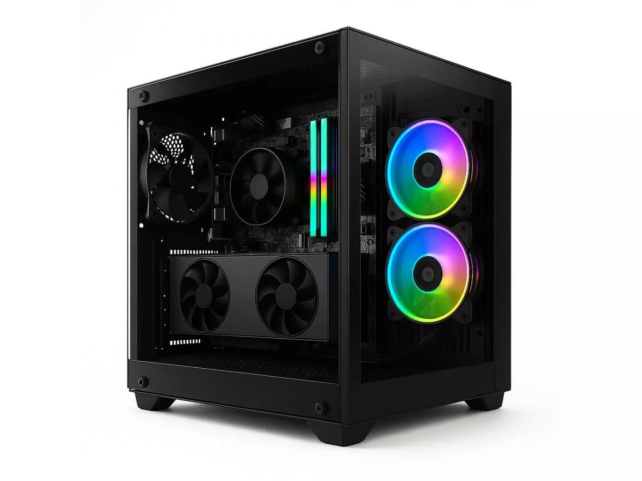Gabinete: Atlantis 3X ARGB – design estilo Aquário com vidro temperado, estrutura reforçada e três ventoinhas ARGB de alto fluxo, proporcionando refrigeração eficiente e visual imersivo.