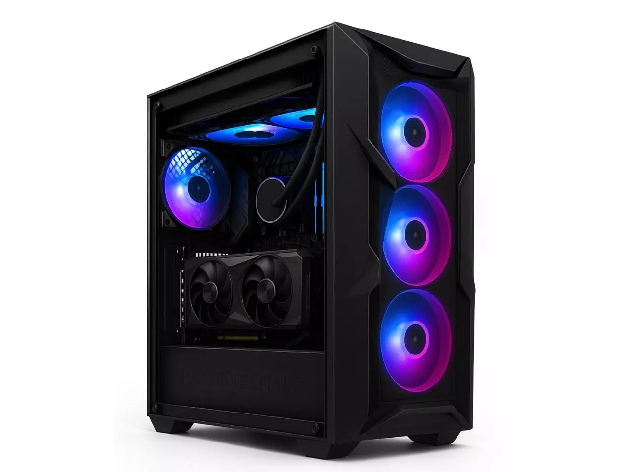 Gabinete: Venum 3X PRO – design agressivo e imponente com lateral em vidro temperado, três ventoinhas ARGB de alto fluxo e estrutura reforçada para airflow otimizado.