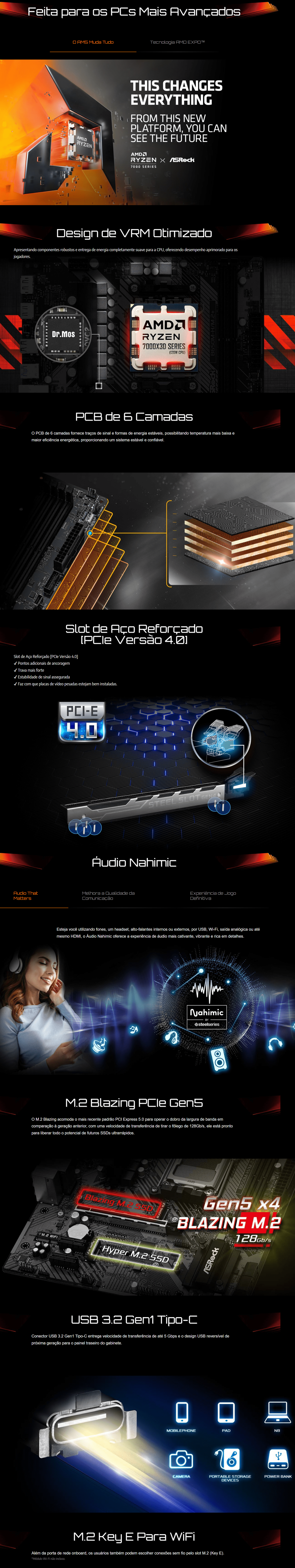 Suporta AMD Socket AM5 Ryzen™ 9000, 8000 e 7000 Series Processors