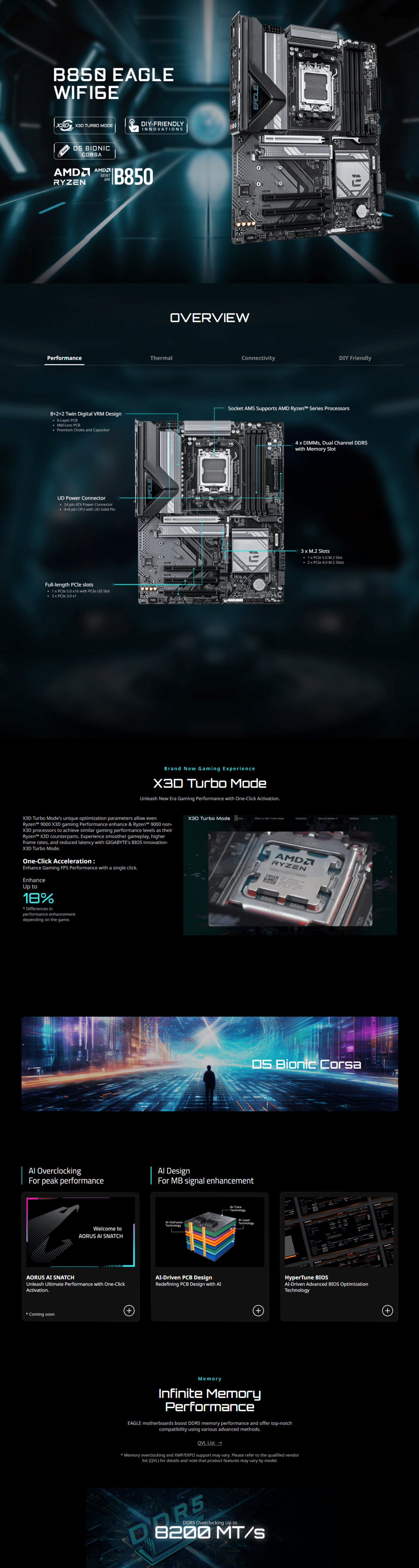 Apresentamos a GIGABYTE B850 EAGLE WIFI6E (rev. 1.x) — uma placa-mãe robusta, repleta de recursos modernos e preparada para suas demandas de alto desempenho, seja em jogos, criação de conteúdo ou estação de trabalho.