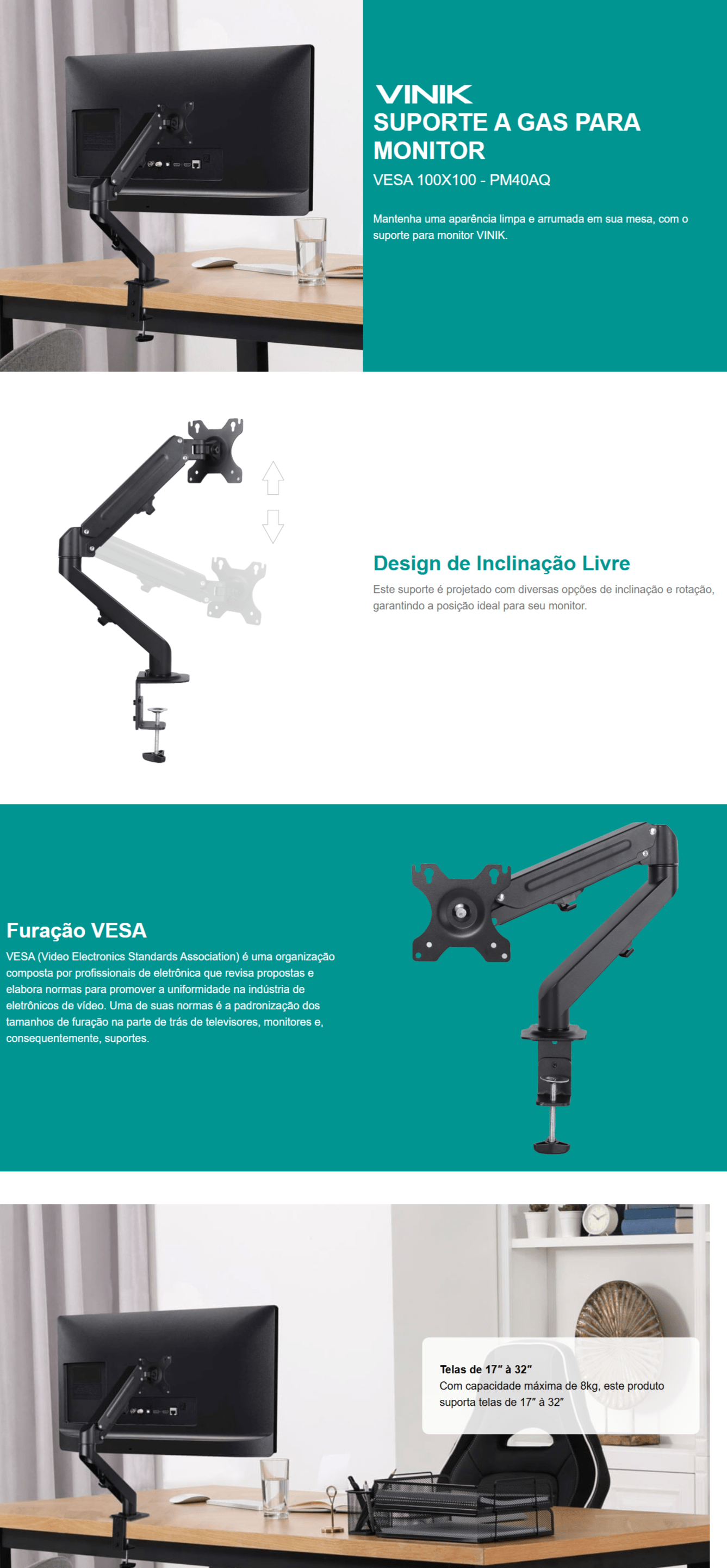 Monitores Compatíveis: 17'' - 32''