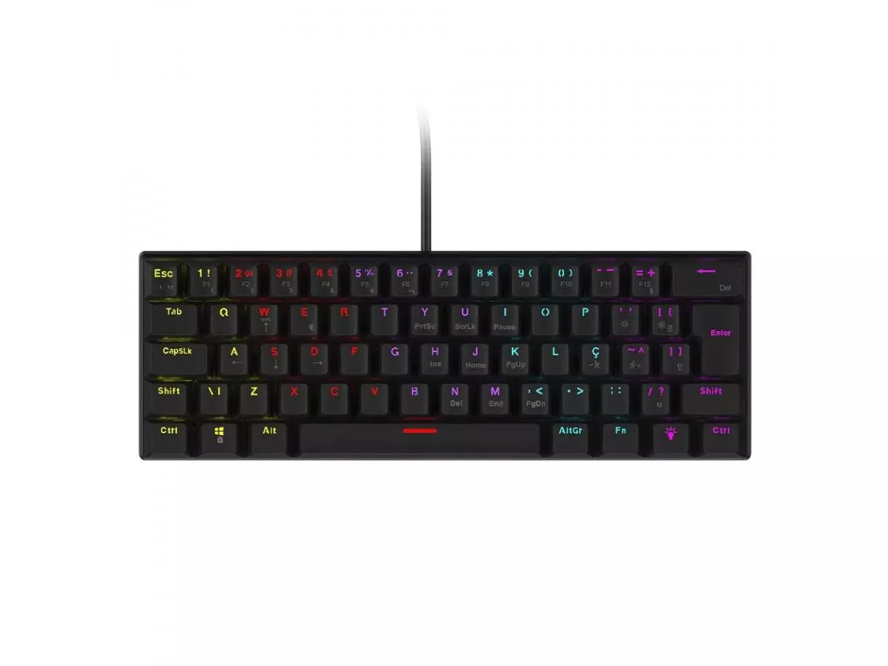 O Teclado Mecânico 60% Vinik Anihi combina praticidade, desempenho e estilo em um design compacto com apenas 62 teclas. Sua estrutura reduzida libera espaço extra na mesa para movimentos mais livres do mouse, oferecendo a vantagem perfeita para setups gamers modernos.