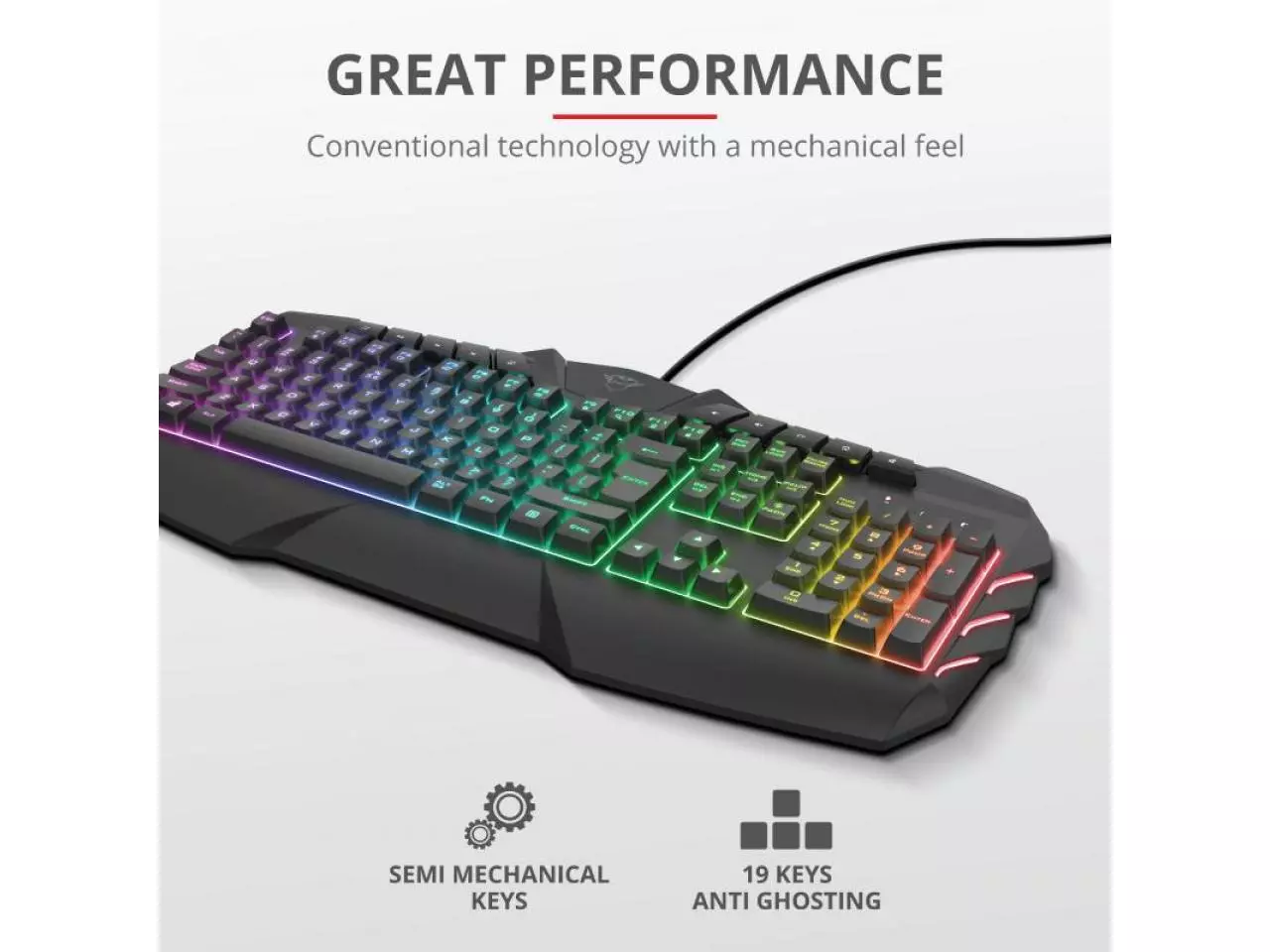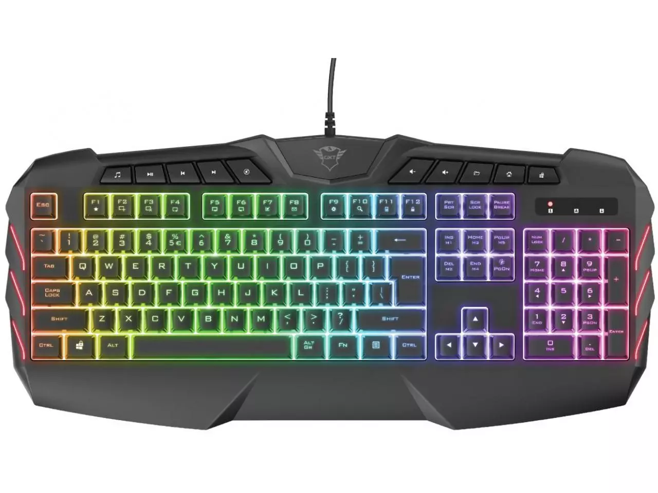Teclado Gamer semi-mecânico com iluminação LED multicolor.